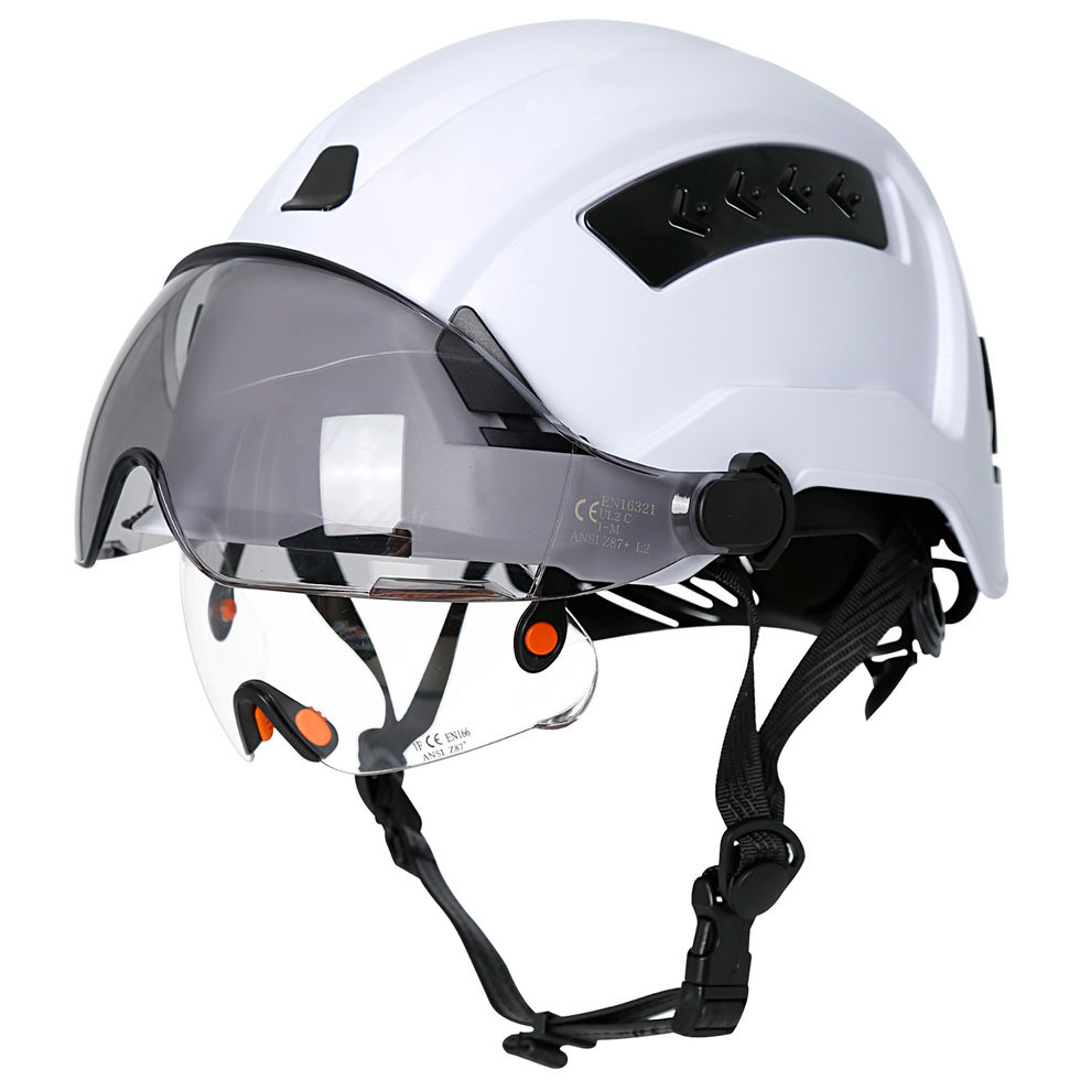 This CE-certified construction safety helmet is designed to provide enhanced head and eye protection for demanding work environments. Featuring double built-in goggles, integrated visors, and reflective stickers, it improves safety, visibility, and comfort during daily work.