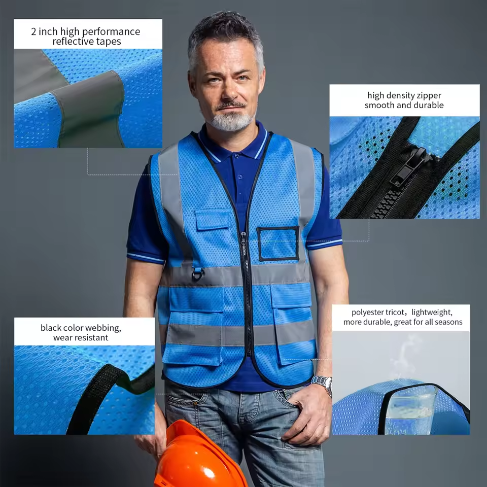 Summer Mesh Safety Vest Hi Vis Construction Workwear for Men Woman Breathable V